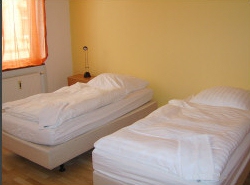 Die Zimmer sind mit Betten, Schrank, Tisch, Stühlen, Fernsehgerät ausgestattet.